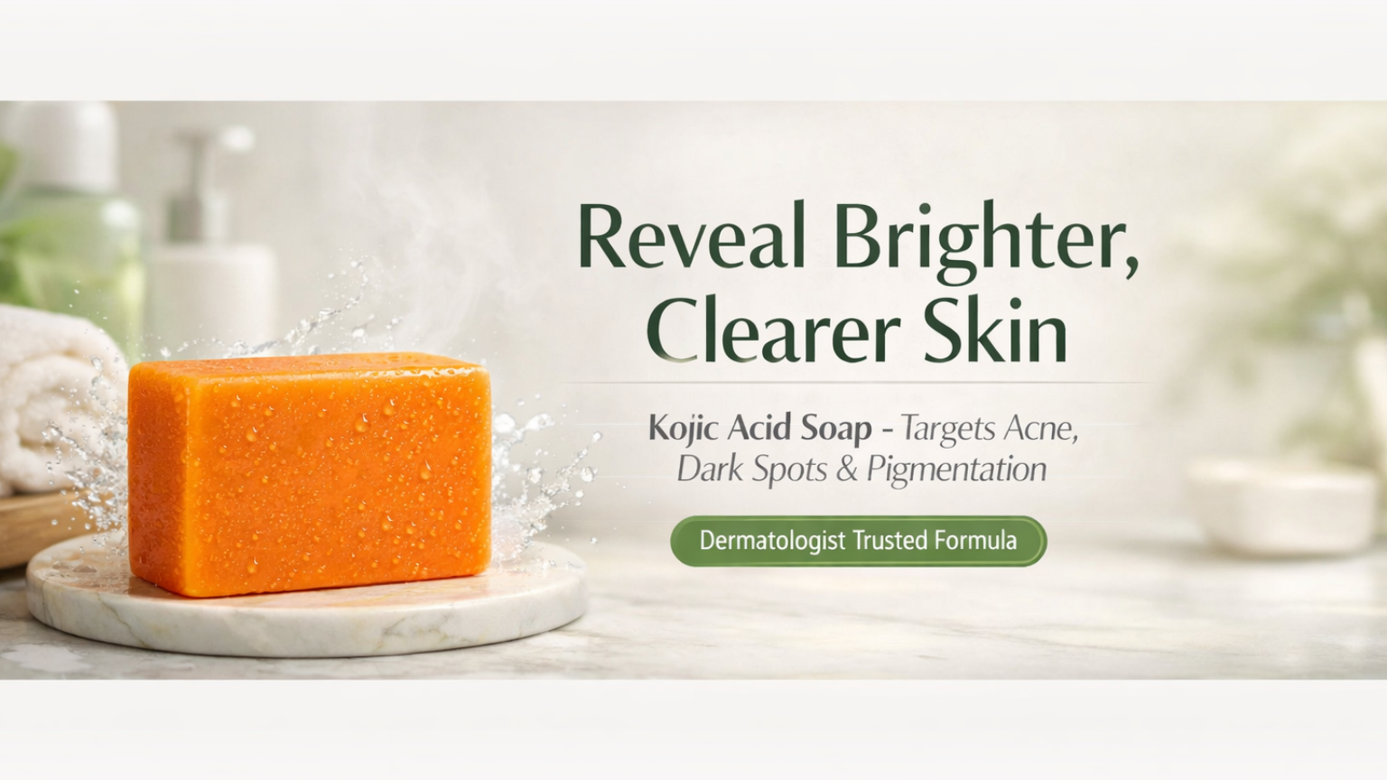 This banner highlights our Kojic Acid Soap as a trusted solution for acne, dark spots, and uneven skin tone β designed to convert visitors into confident buyers.